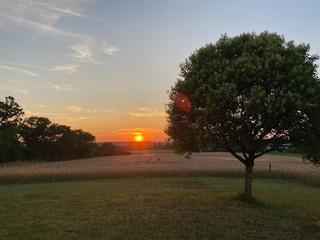 Vanaf het terras heb je een geweldig uitzicht over het glooiende landschap met schitterede zonsondergangen. Rondom de gîte een ruime grasmat en een kersenboomgaard met uitzicht op onze bloemen en moestuin ! Vanuit de gîte hebben wij een wandelpad gemaakt naar onze overburen (Bassiviere Barn Chic) waar je heerlijk kunt lunchen en dineren in hun mooie restaurant. La Carretal; is een werkend boerenbedrijf, wij zijn bezig in de moestuin, ons toekomstige parkje of in de loods. Kom eens kijken als je een minuutje over hebt, dat vinden wij leuk!